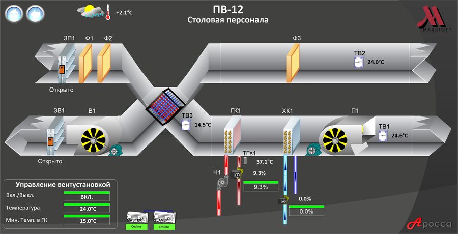 Шлюзы и контроллеры ввода-вывода непосредственно, обеспечивают контроль и сбор информации с датчиков сенсоров и панелей управления. Взаимодействия пользователя с системой происходит интуитивно с помощью высокотехнологичных сенсорных панелей, разрабатываемых индивидуально в зависимости от целей проекта. Системы инженерной диспетчеризации представлены в виде интерфейса, построенного на графических мнемосхема. Управления происходит в автоматическом режиме, при помощи выполнения скриптов, описывающих любой сценарий развития ситуации. Каждый скрипт разрабатывается и тестируется индивидуально в зависимости от глубины погружения проекта. Оборудование спроектировано с учетом низкого энергопотребления. Оборудование соединяется в сеть на шине vBAS - 4х проводный интерфейс, который позволяет обеспечить помехоустойчевую работу и питание устройств.